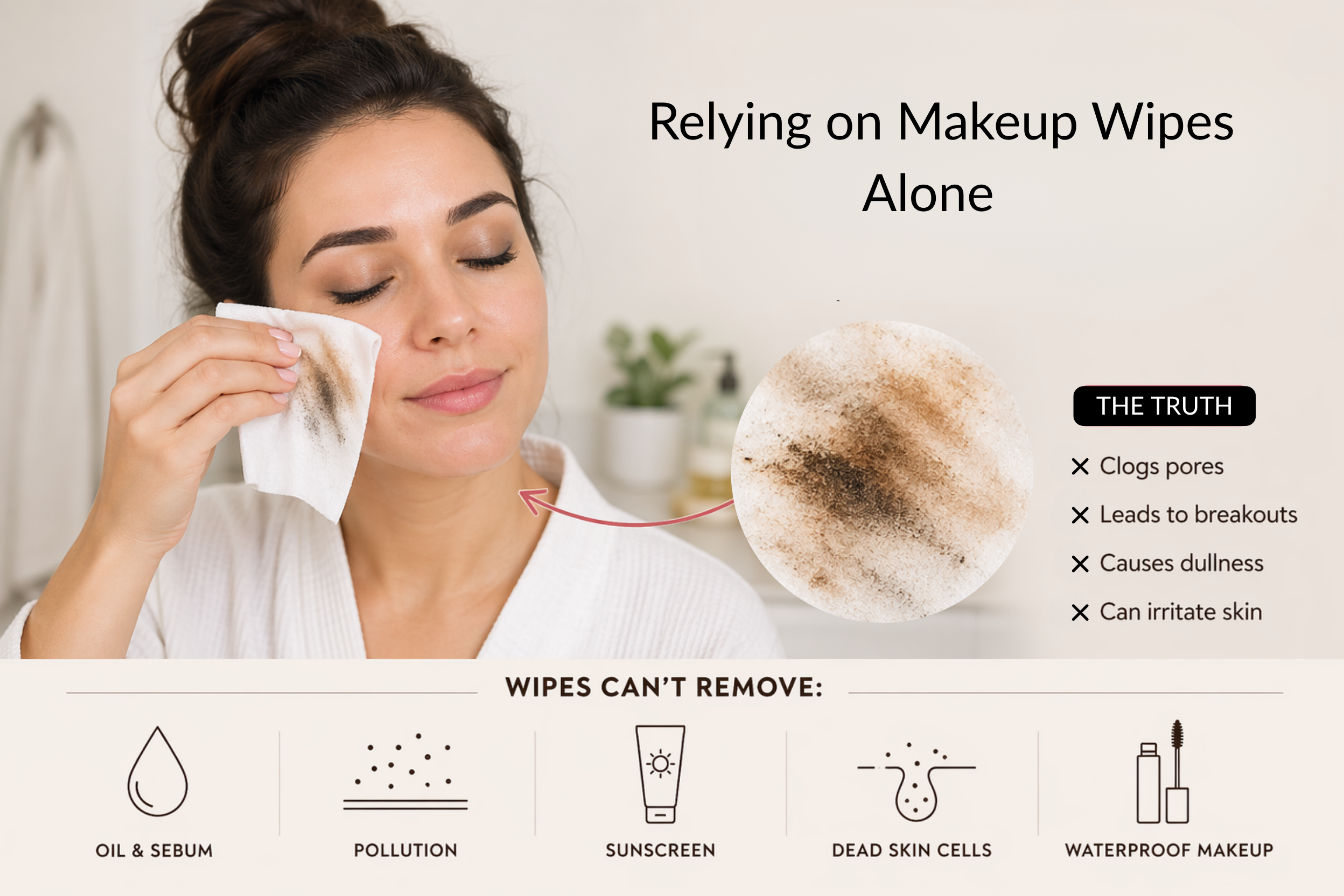 ❌ Relying on Makeup Wipes Alone